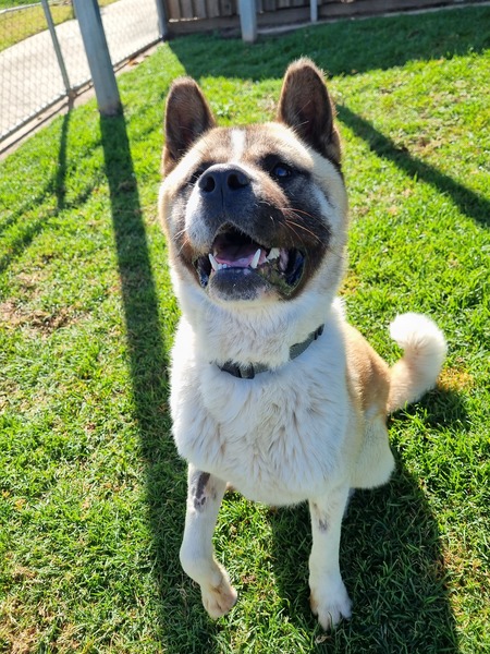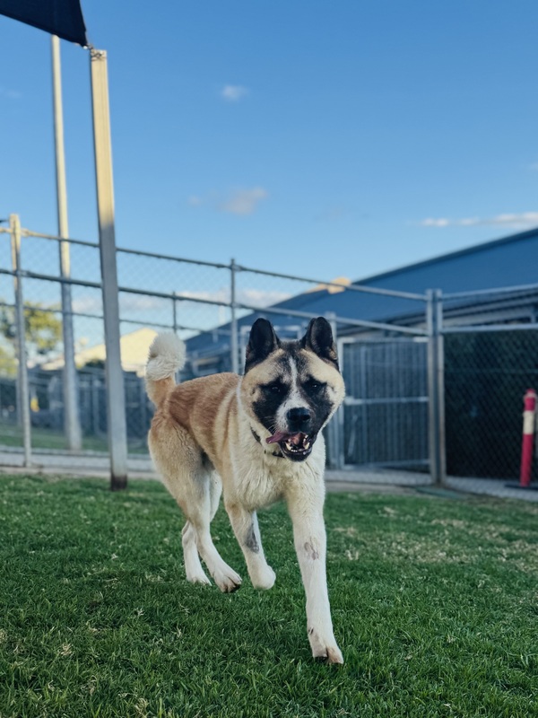 I'm a sweet, social guy who loves leaning into people for pats - it's my favourite way to say hello. I'm still learning how to play with other dogs, so if I go to a home with one, she'll need to be calm and patient. I mean well, I just get a bit excited and sometimes forget how goofy and big I am!
