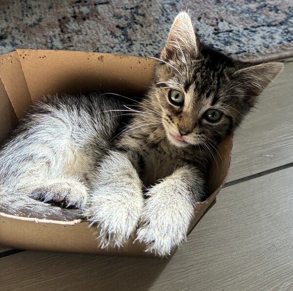 Mia is a beautiful brown tabby female kitten whose unique and striking markings make her truly one of a kind. Beyond her stunning coat, Mia has a gentle and affectionate personality that will quickly win you over.