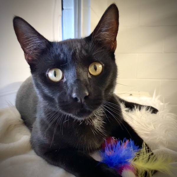 Are you a black cat lover? This boy is so stunning that he'll amaze any cat lover. His jet black coat is smooth, short and shiny with just a touch of white on his chest. Although he doesn't look it, he's quite heavy at almost 5.5 kg, and this would be due to his long body. You really have to meet him to see how amazing he is.