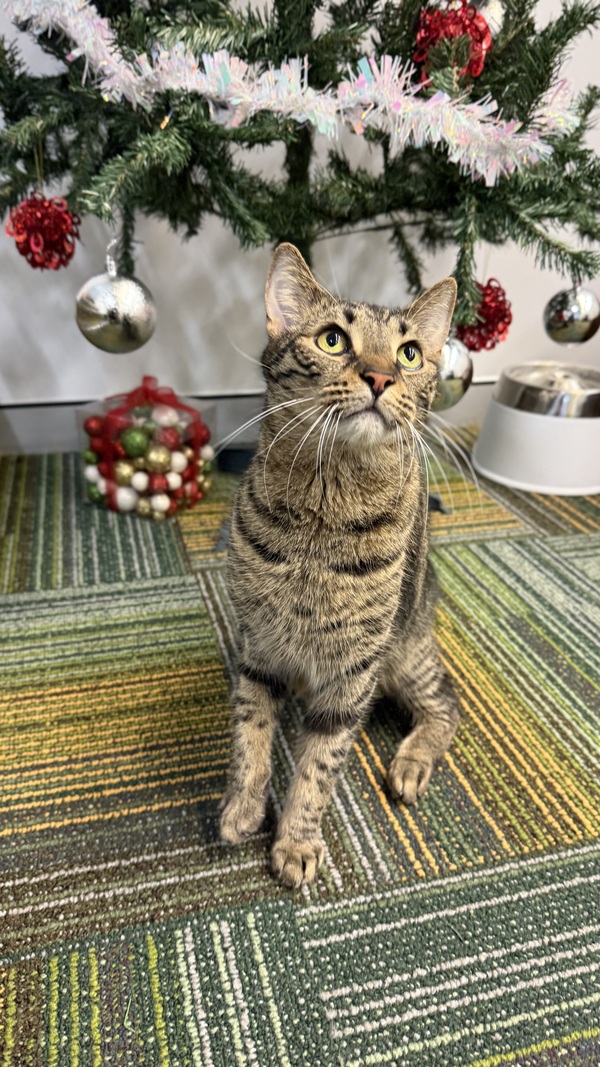 Leo is a handsome boy who's looking for a calm, understanding home where he can feel safe and loved. He'll need plenty of cosy spaces to call his own - scratch posts, cat trees, cardboard boxes, or igloos - along with access to shelves or dressers so he can perch high or hide low as he pleases. Leo can be timid at first in a new environment, so a patient adopter who understands that he may take some time to settle in will help him blossom into his affectionate, bunty self. Once comfortable, Leo is a very happy boy who is incredibly affectionate, loves gentle pats, treat paste, and all the yummy snacks he can get! He loves the company of his human family but prefers to be the only cat in the home, as we know he hasn't enjoyed living with other felines previously. A household with teens or older children who can read his body language and respect his space would suit him best. With time, love, and a peaceful space to call his own, Leo will reward his person with trust, warmth, and plenty of purrs.