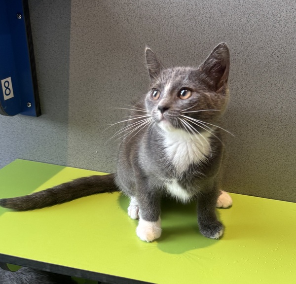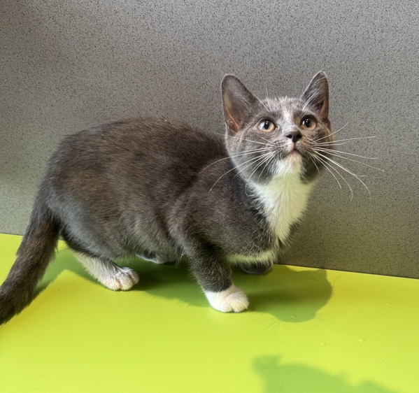 Hello! My name is Stormy, and I'm mischievously cute-just take one look at my bold white stripe and my adorable little paws and you'll fall in love instantly! I'm a tiny bundle of energy who loves to zoom around, play with anything that moves, and turn the house into my own personal racetrack.