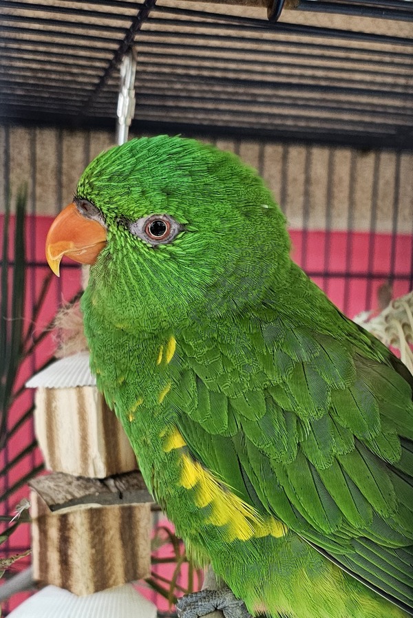 This vibrant little Scaly-breasted Lorikeet may not actually know any Grass-type moves, but it does have a super-effective ✨charm✨ attack! Bellsprout is a tiny whirlwind of colour, curiosity, and goofy energy.