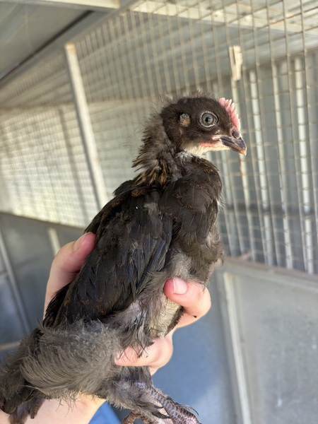 Marble is a gentle young chicken with a calm, thoughtful nature. This little beauty loves exploring at an easy pace, staying close to comfort, and taking in the world with quiet curiosity.
