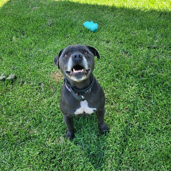 Archie may be an older boy, but don't let that fool you - his spirit is bright, his tail is busy, and he still has plenty of joyful energy to share. He's a classic Staffy through and through, full of personality, charm, and all the quirky traits that make the breed so lovable. Because of that, he'd thrive with someone who already knows and appreciates the Staffy way of life.