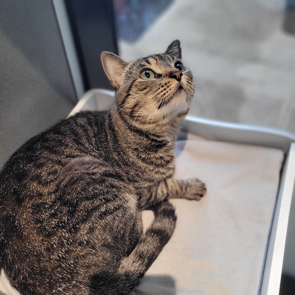 I like people and I warm up quickly, especially if you give me a quiet spot and some attention. If you have other cats, that's fine with me. I just do best with slow introductions so we can all get comfortable at our own pace.