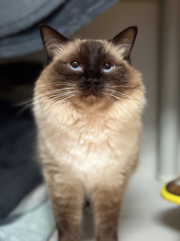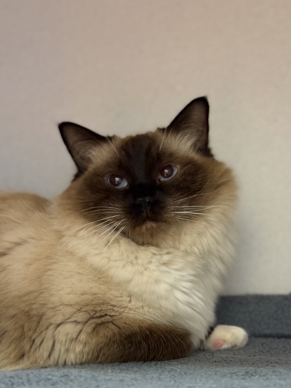 Hi there, Dumpling here, your gorgeous seal point female ragdoll kitty. There's nothing quite like a ragdoll cat. If you're looking for a striking looking cat, then a ragdoll is your feline companion. If you're looking for affection, we're top of the class in this department: we're very people-oriented you see. I'll generally greet you at the door and follow you around like a shadow (hope you don't mind). Oh, and just in case you didn't know: ragdolls love to be picked up and carried around. We'll flop in your arms, just like a...... well, just like a ragdoll! I'm a little timid just now, so please give me some quiet room time to adjust to my new surroundings. I've lived with another cat who is also in shelter with me at the moment, his name is Messi. If you are wanting a pair of cats we would love to go together! Ive also lived with a dog so if you have either of these then I'll probably just need some slow meet and greet time to adjust and see if we're companionable.