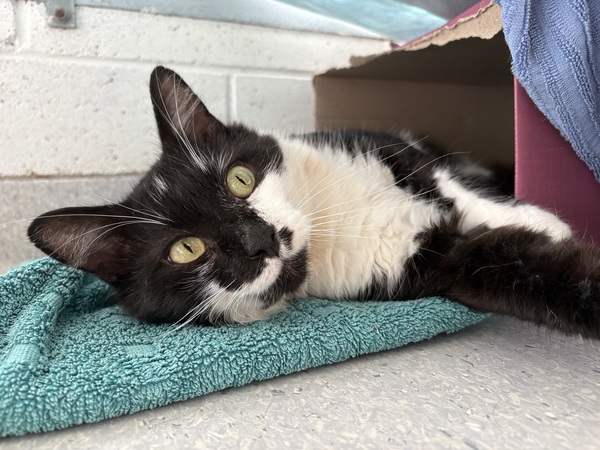 Meet our resident shy guy, Jasper! Jasper is a gentle black and white sweetheart who's hoping to find a calm, quiet home where he can truly blossom. 💕