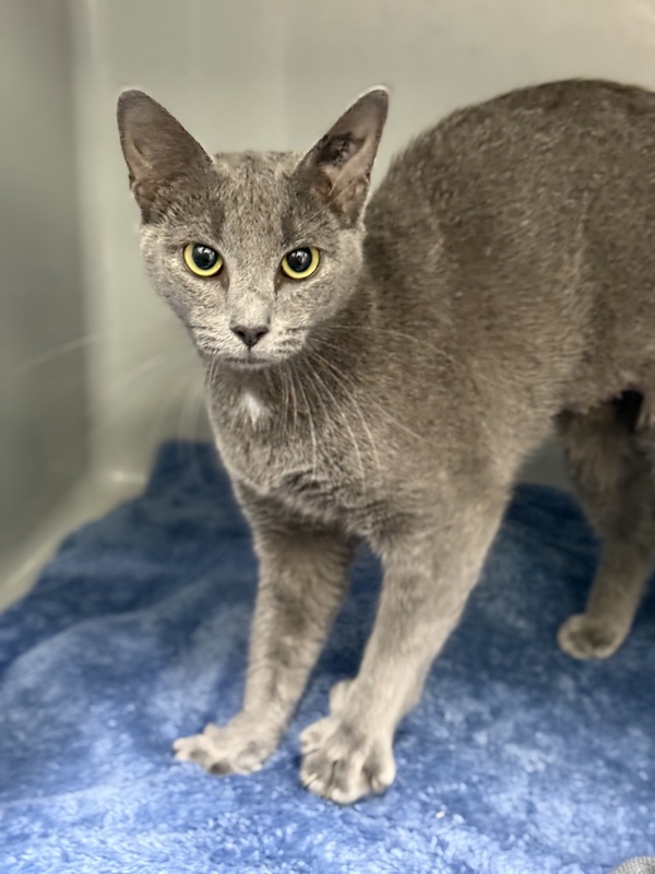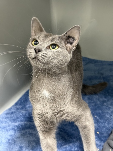 Misty is a gentle, blue‑coated sweetheart looking for a calm, patient home where her sensitive nature can truly blossom. Shelter life has been a little overwhelming for her, but with kindness, time, and a cozy spot to retreat to when she needs it, she'll reward you with the softest companionship. She's suitable for first‑time adopters who understand she may be shy at first and she'd be happy in a home with respectful older children or even another friendly cat, as she came into care with one and handled it beautifully!