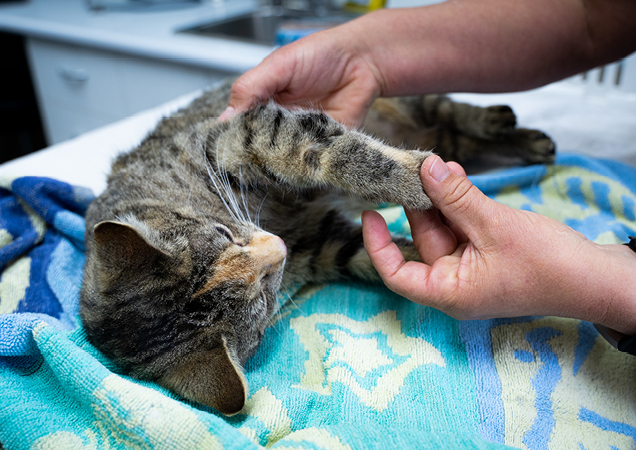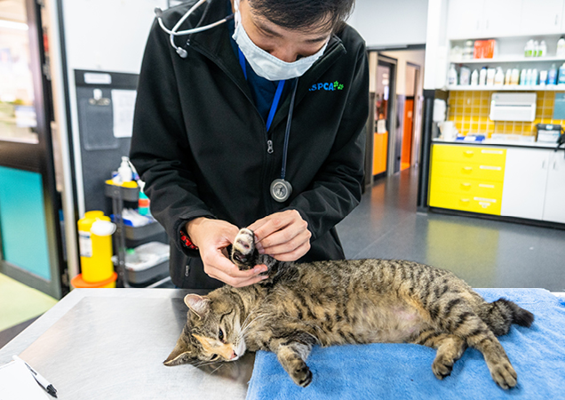 Later identified as Gilbert the cat, he was assessed and treated by our RSPCA veterinary team. Miraculously, Gilbert had only sustained two puncture wounds on his foot and no other injuries from the trap.
